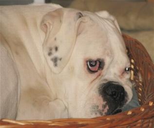 Hallo, ich bin Alpha. Eine reinrassige weiße Boxerhündin. Das Licht der Welt habe ich am 19.01.2006 erblickt.
